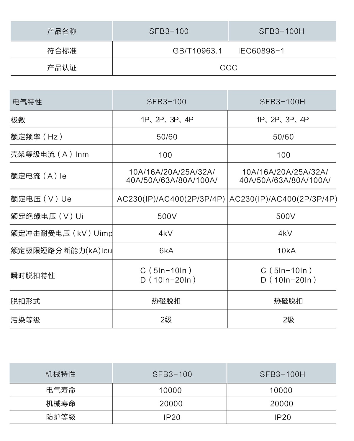 小型斷路器SFB3-100系列