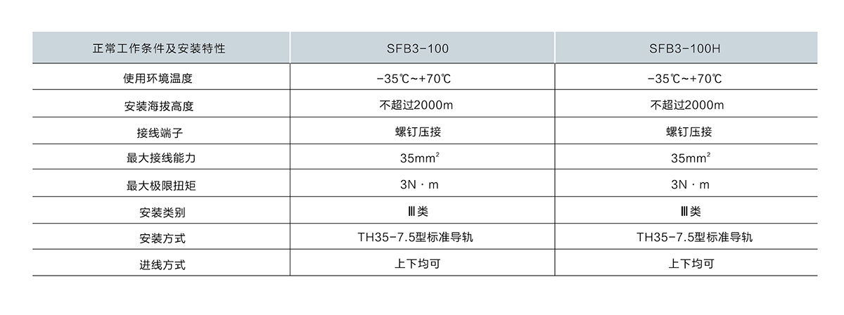 SFB3-100系列高分斷小型斷路器適用于交流50Hz或50Hz,額定工作電壓400V及以下,額定電流10A-100A的場所,主要用于辦公樓、住宅和類似的建筑物的照明、配電線路及設備的過載、短路保護,也可在正常情況下,作為線路不頻繁轉換之用。