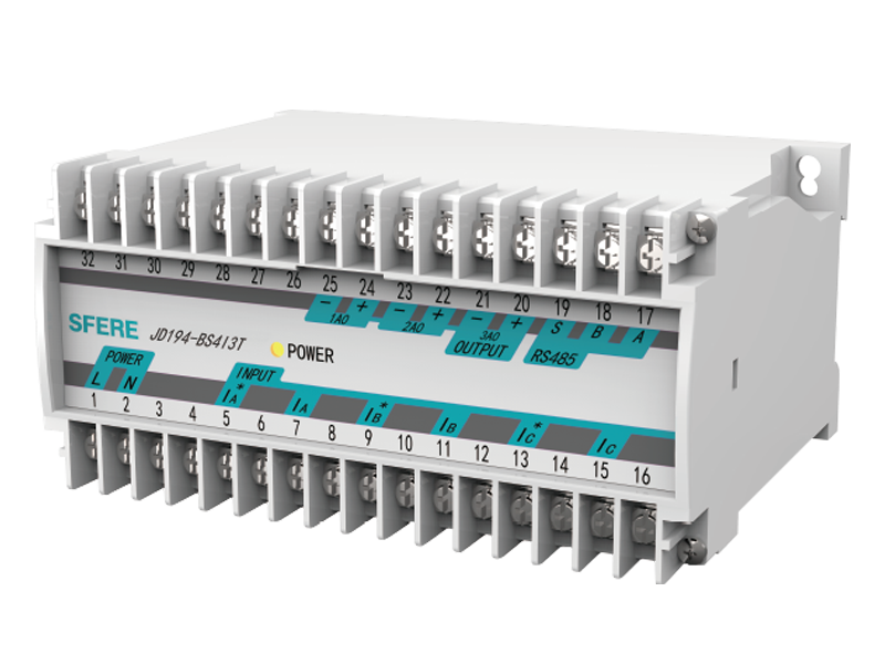 JD194-BS系列測量三相電流或電壓信號,隔離變送輸出三路模擬信號,帶RS-485通訊輸出