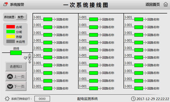 實(shí)時(shí)顯示出線各回路電量數(shù)據(jù)